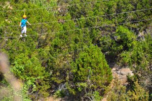 Later in the day came the time when I had to reach deep down inside myself to find the courage and strength to face my fears. And then discover what awaited me on the other side of fear. At Candlelight Ranch, a nature retreat for children with special needs, they call the challenge course the Canyon Crawl. It’s more like walking a thin tightrope across a 250-foot-wide canyon while suspended over 75 feet above the canyon floor. You’re rewarded with an exhilarating zipline trip back across the canyon. When it was my turn to climb onto the “tightrope,” I initially felt like I would burst into tears from being so scared. Then I let go with one hand and made a silly move on the cable beneath my shaking feet. The other moms cheered and I started laughing.  As soon I laughed, the fear flew out of me and I knew I could do it. The amazing zipline trip back across the canyon made it all worth it, and I can’t wait to do it again.